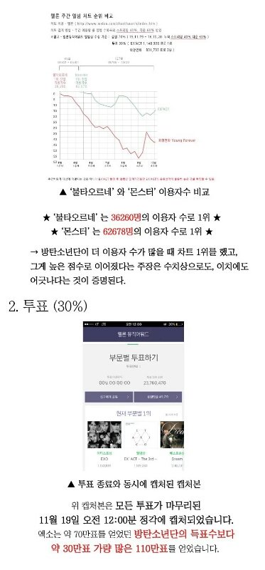 우리가 보는차트로 음원70이니까 이짤 성립가능임 내부데이터가 없는데 왜 수상은 엑소 아니냐고 문의ㄱ