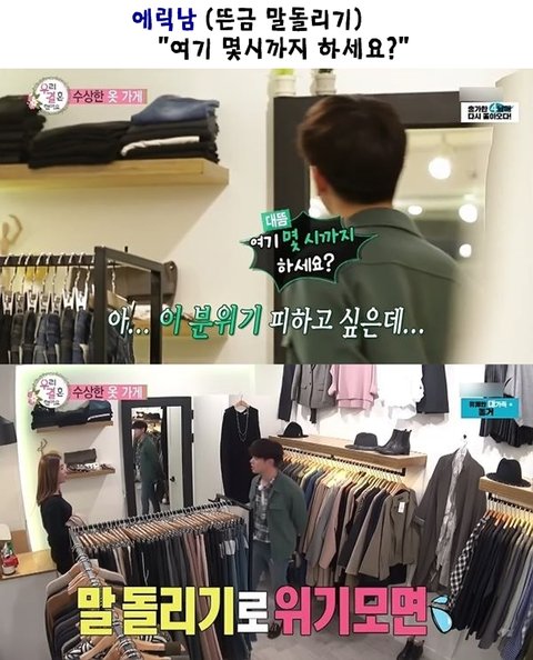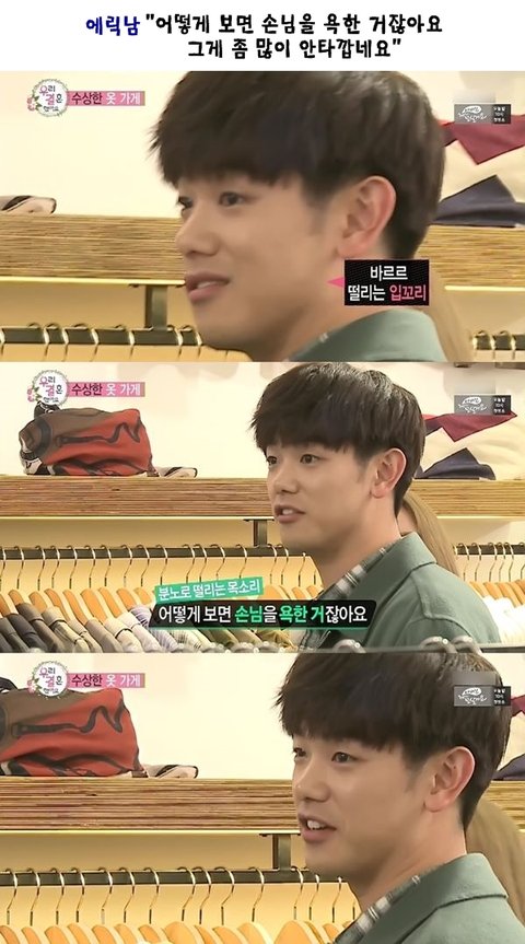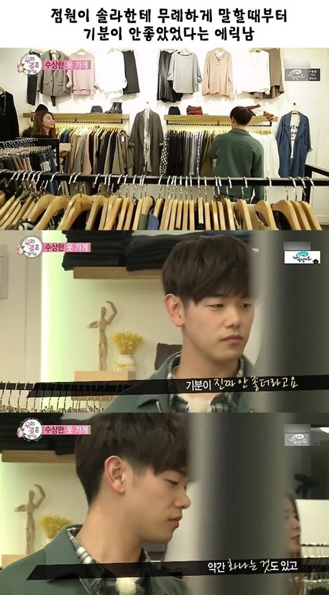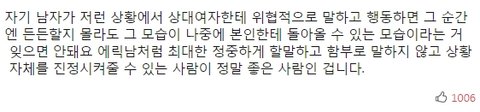 이건 진짜 밑에 명언을 남긴 영상이지.... 진짜 남자가 저런 돌발상황이나 아님 술마셨을때 조금이라도 위협적이면 안돼요 그거 나한테 다 돌아와요 테스트는 기분나쁘겠지만 남자는 진짜 에릭남 같아야 안심됨... ================================= 자기 남자가 저런 상황에서 상대여자한테 위협적으로 말하고 행동하면 그 순간엔 든든할지 몰라도 그 모습이 나중에 본인한테 돌아올 수 있는 모습이라는 거 잊으면 안돼요 에릭남처럼 최대한 정중하게 할말하고 함부로 말하지 않고 상황 자체를 진정시켜줄 수 있는 사람이 정말 좋은 사람인 겁니다.