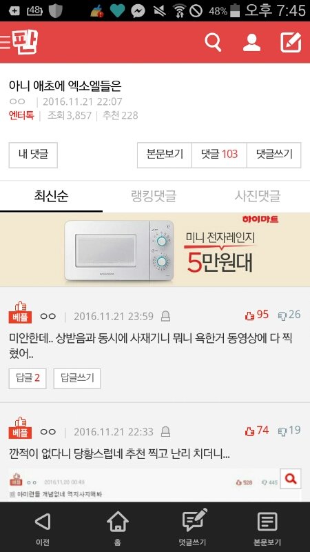 지금 아랫동네는 상황자체도 잘모르네 ㅋㅋ