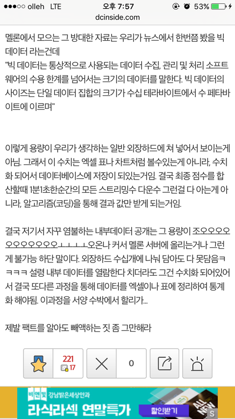 왜 내부데이터 공개 "못"하냐면 (방갤펌)