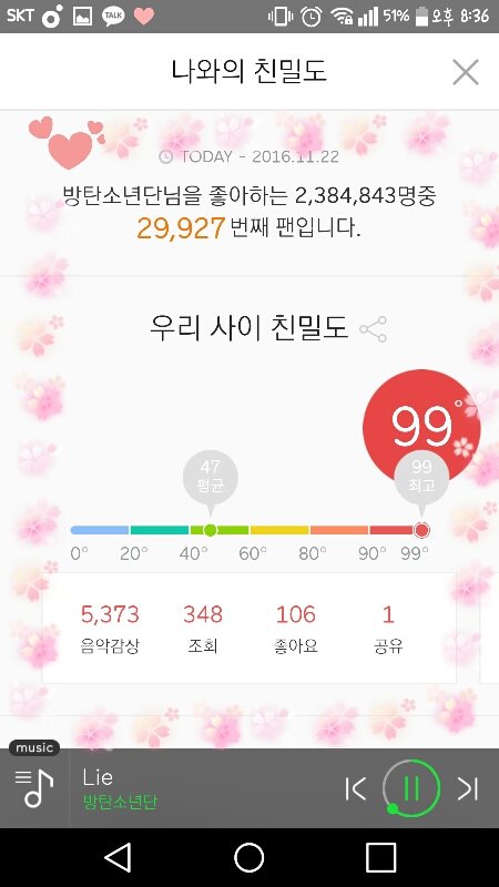 드디어 99다ㅠㅜㅜㅠㅠㅠㅠㅠㅜㅜ언제 99되나 하루하루 확인만 해가면서 기다려왔는데 드디어ㅠㅜ 이 영광을 방탄과 이삐들에게 바칩니다(손키스) (진히 쓰다가 3주전에 서양수박으러 갈아타서 스밍횟수가 별로 안높다..)