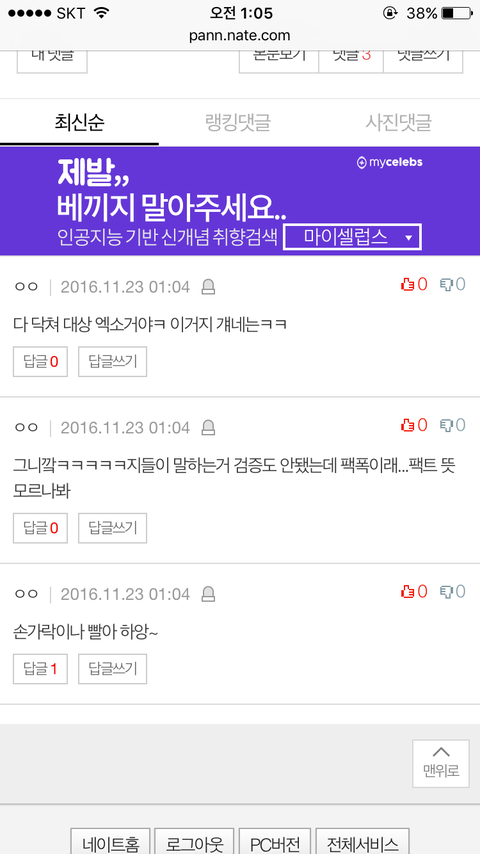 지금 스밍인증 못해서 글 못쓰고 있었는데 댓글 이런거 안달아줘도 되니깐 성희롱은 좀 그렇지않아? 지워줘라 보고 진짜 기겁함....