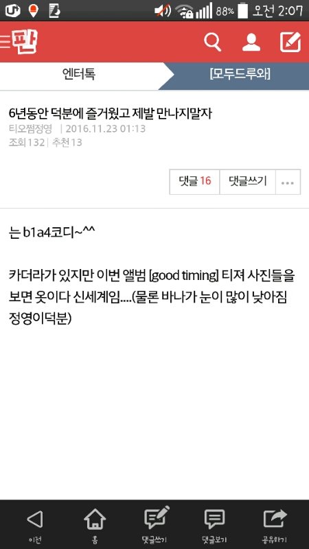 코디의 심각성도 알리고 컴백도 알리고 겸사겸사해서 저번처럼 톡선에 올릴까해 들어와서 추천하고 심심할때 댓글 적어주면 안될까