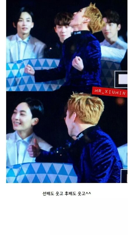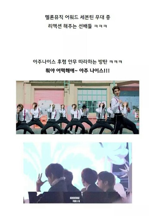 세븐틴 무대 중 리액션 해주는 선배들.jpg