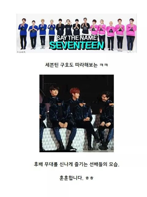 ㅋㅋㅋㅋ엑셀인데 애들리 세븐틴 겁나귀여워함ㅋㅋㅋㅋ인터뷰나 직캠보면서 느꼈어 ㅋㅋㅋ인원수가 많아서 그런가 직속후배처럼 봄ㅋㅋㅋㅋ눈빛따수어