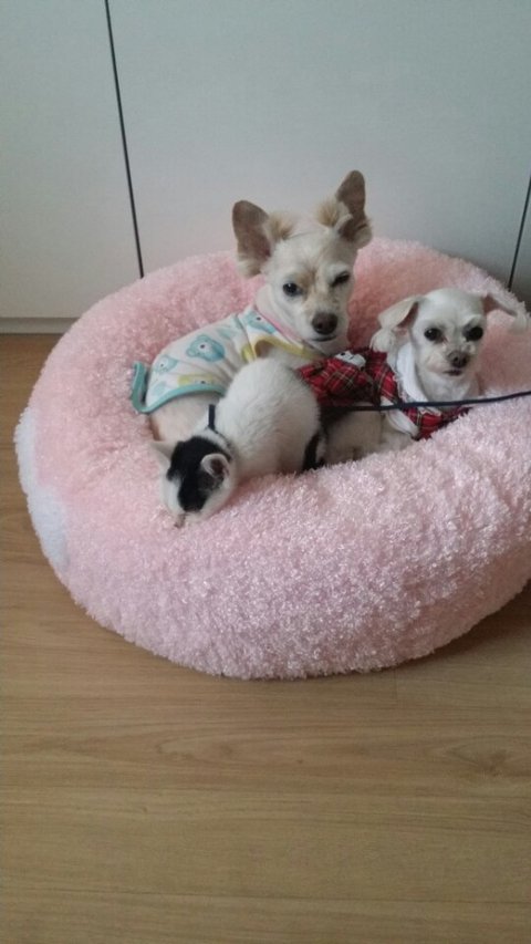 눌러앉는 바람에 무려 강아지 3마리와 고양이 1마리를 키우게 되었어요...ㅋㅋ