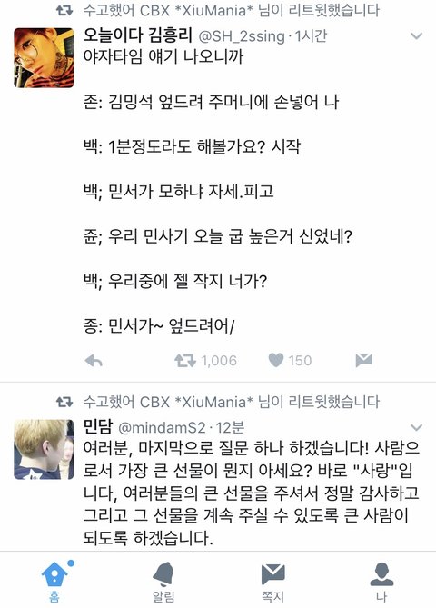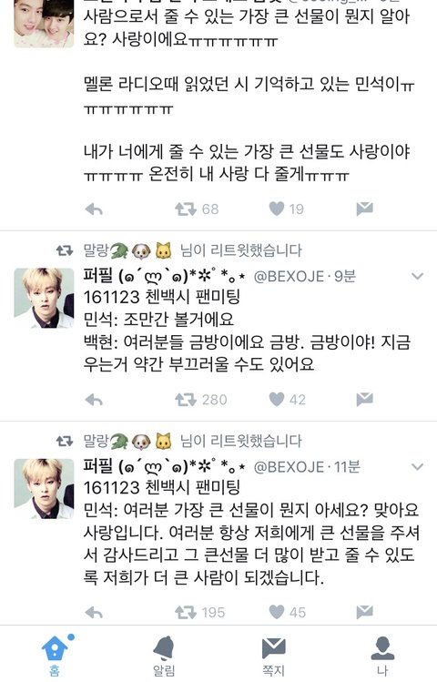 엉엉 오늘 민석이 넘 귀엽고 마지막멘트 진짜 감동이야ㅠㅠㅠ