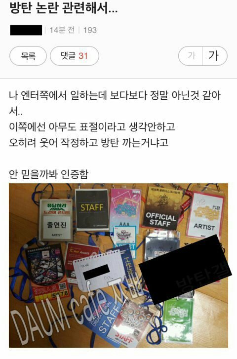 저기 업계에서는 음반유통이나 사재기행위에 관련 되있지않은 한 규제없다고 하고 관련도 없다고 함ㅋㅋㅋㅋㅋㄲㅋㅋㅋㅋㅋㄱㅋㅋ존웃ㅋㄲㅋㅋㅋ 방탄 사재기라고 빼액했던팬들이 왜 이렇게 누명을 벗겨주는지ㅜㅜ 지들이 문제 삼으니까 진짜 문제된줄알고 심각하게 커진거였잖아 ㄱ빡침: