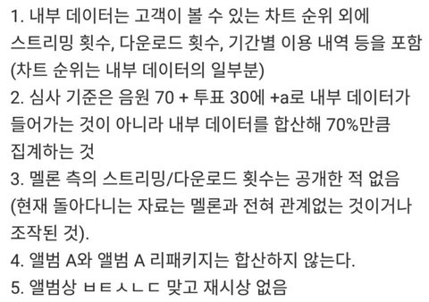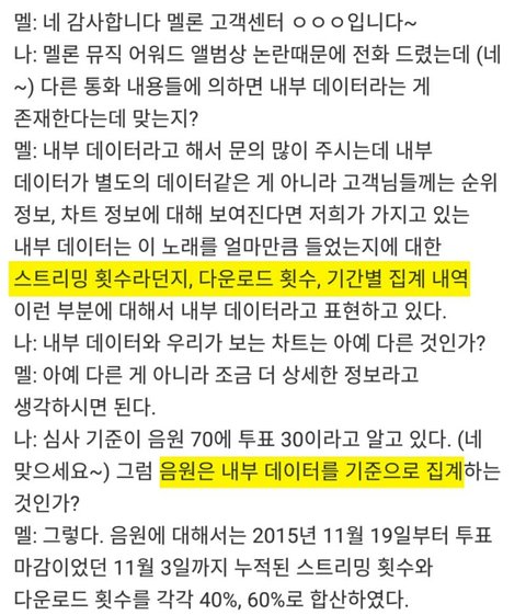 그리고 음원 70% 투표 30%에서 음원은 (표현상)내부데이터기준으로 집계하는거라고 하시네 뭐 다음은 사진보면되겠다