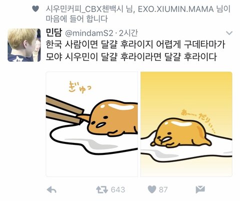 이제부터 구데타마는 달걀 후라이로 아다뿌에 이어 시우민 사전에 등록되었슈미다ㅇㅅㅇ