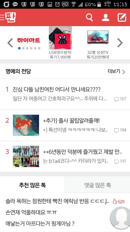 그리구 이글 내가썼당.. 어제 밤에 갑자기 정영이 ㅈ짜증나면서 삘타갖거 글썼는데 우리 홍보글보다 조회수가 높아..ㅎㅋ 밑에 앨범홍보도 있으니까 거부감(?)없이 자연스럽게 홍보 된거겠지??