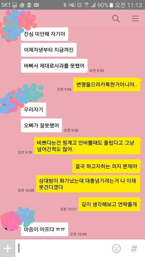 최소한 사람이 저렇게말하면 미안하다 한마디로 끝나는것이아닌 길게 카톡을 보내준다던가, 다음날아침 맑은정신에서 전화로 진정성있게 사과를 하던가 해야하는거 아닌가요 ? (참고로 전 사과할때도 미안하다만 반복하는 것이아닌 어떤걸 잘못했고 앞으로 이런상황이 오면 어떻게 할 것인지 구체적으로 얘기해주는걸 좋아해요)