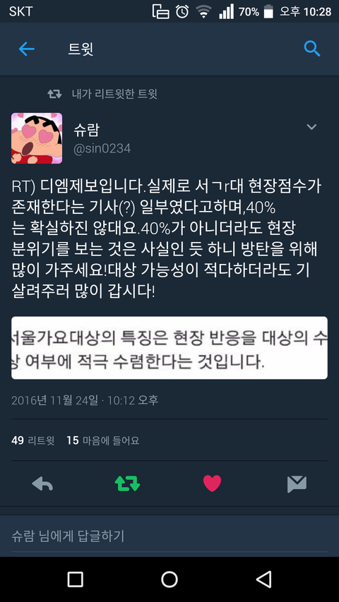 현장 중요하데 실제로 현장반응이 반영된데!(