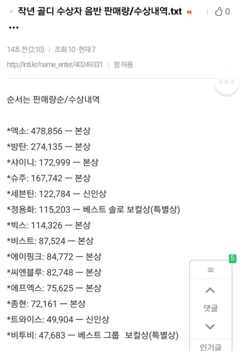 우리 작년 음반 판매량으로 음반 본상 받을 수 있었어 우리 애들 정말 음반 판매량은 신인수준이 아니구나 정말 자랑스럽다ㅠ