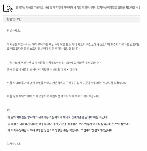 가116온차트도 '정확한 집계기준'을 공개할수없다는데 너무 당연한걸 물고 따져서 음? 하는게 눈으로 보일정도인데ㅋㅋㅋㅋㅋㅋ 쟤네 논리로 따지면 정확한 집계기준을 못알려주니까 가11온도 비리네..... 나중에 우리가 저기서 상한개라도 받으면 비리라고 다 엎어트릴기세