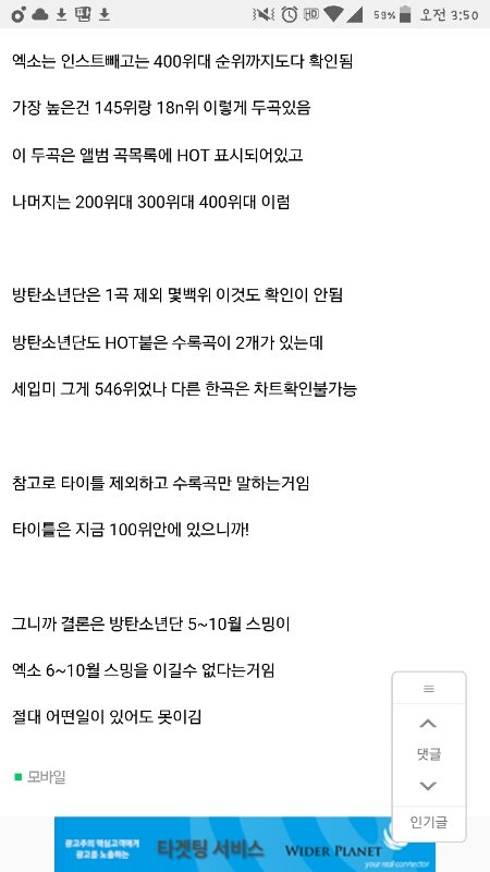 인ㄴ티에서 본건데 땅굴반박할수있는 자료가져왔어 내일 멜론에도 이거 피드백하자