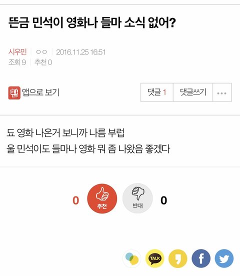 뜬금 민석이 영화나 들마 소식 없어?