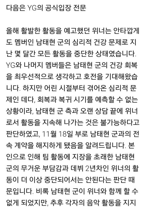YG입장이 짜증