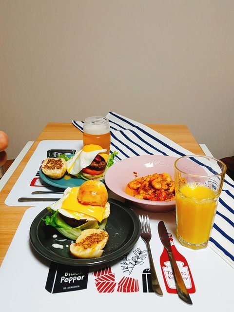 남편이 우리도 만들어 먹으면 된다며 수제버거를 해줬어요.