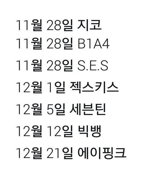 일단 일년이 끝나가는 즈음에 나오는 앨범이니까 우리목표는 4분기, 음방 1위라고 할 수 있는 거지? 이후에 나오는 음원 중 4분기상 위협할 만한 음반강자는 없고 음방 1위는 좀 위험한 듯 싶다... 음원차트에서 최대한 상위권 유지해야할듯ㅠ