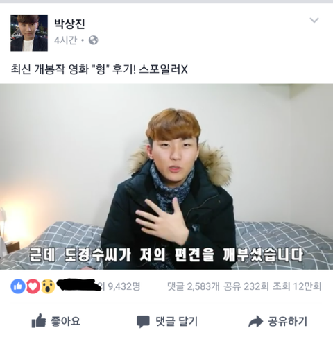 야 얼굴책에 이거 좋아요 누르셈 영화 형 관련된건데