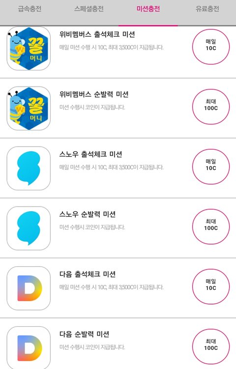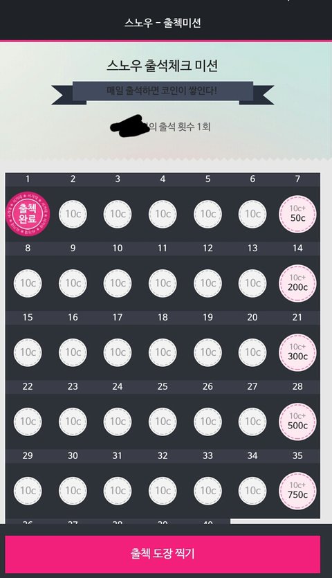 스ㅡ노우, 댜음 출첵미션도 꼭해라 너네 스ㅡ노우앱이랑 댜음앱만 있으면 매일매일 출첵할 수 있음