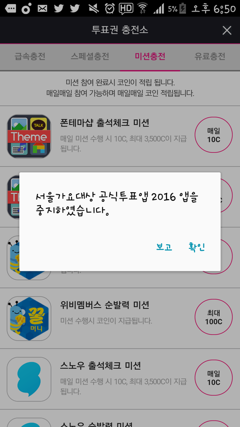 아까전까지는 계속 됐었는데 지금 계속 안돼....로그아웃하고 새아이디만들어서해도 안되고 앱깔고지워도안돼엉엉