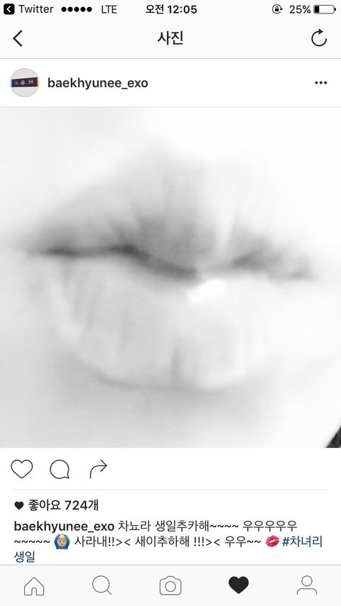 백현 이상하네 보통 생축글은 생일인 멤버 사진을 올리는데 백현이는 왜 지 입술로 관심끌려고하지? 찬열이 생일때도 지가 관심받고싶나?