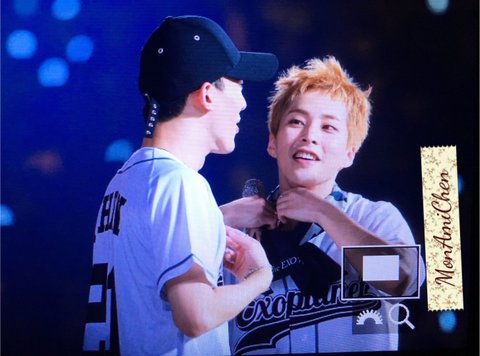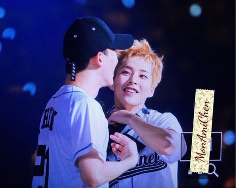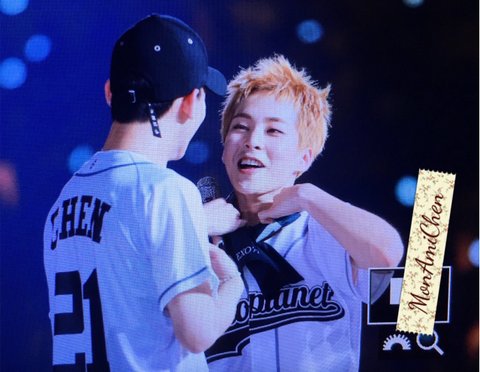 시우민)멤버랑 같이찍힌 사진인데 넘 귀여워