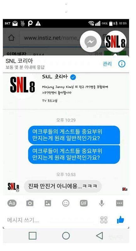 타팬인데 ㅈㄴ화난다ㅋㅋㅋ snl 왜저래? 진짜 만졌든 안만졌든 지금 그게 중요한게 아닌데 이건 엄연히 성추행인데; 진짜 내가수가 저런일 당했다 생각하면 너무 화난다 바나분들 이세영이랑 스텝들한테 꼭 사과 받아내세요