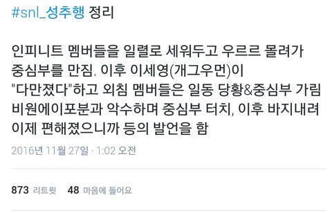 snl은 빨리 비원에이포랑 인피니트한테 제대로된 사과문을 써주길