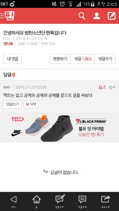 댓글다는거 글 순위 올리는거라며? 짜증나니깐 삭제