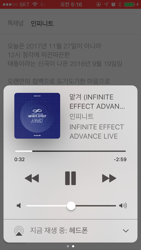 태풍이라는 신곡이 나온 2016년 9월 19일임