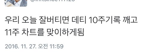 오늘 차트아웃 안되고 버티면 내일 월요일부터 태풍 11주가 되는거고 이게 데스티니 기록을 갱신하는거야!