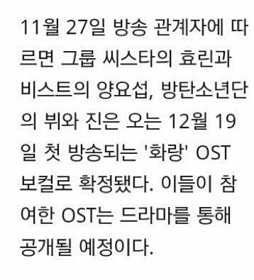 드라마 화랑 ost 부른대
