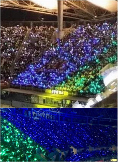 저게 다 우리는 아니고 쨍한 파란색만 우리야 살짝어두운 파란색은 빅스분들이고 근데 멜디들 진짜 많이옴 팬석말고도 엄청많았고 ㅎㅎ좋다 계속성장하는 기분이여서