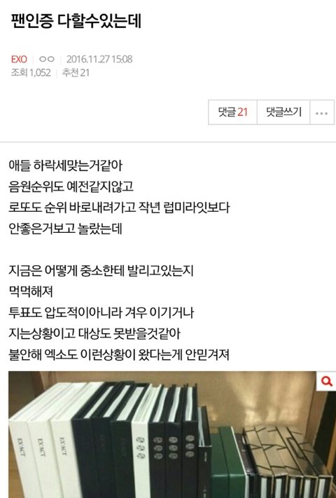 이건 블로그에서 퍼온거라고 하는데 이거 보니까 감이옴 그때 왜 옾톡만들어가면서 팬들 인증 받으려고 했는지 ㄷㄷㄷ 싸패년들 진짜 별짓을 다하네