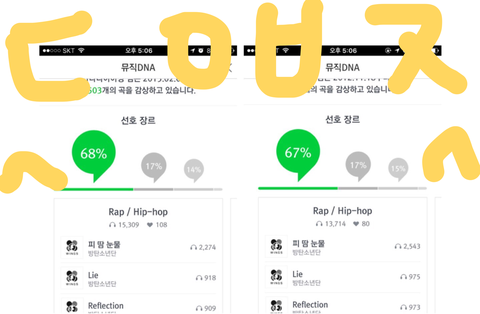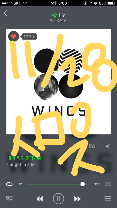 숨스밍 한 이삐들 피땀 총 몇 번 들었어?? 공기계 장시간 이용 때문에 끊기고 내 행드폰은 보조배터리 고장나서 간당간당할 때까지밖에 못돌랴서ㅠㅠㅠㅠ 이삐들 총 몇 번 돌렷어??