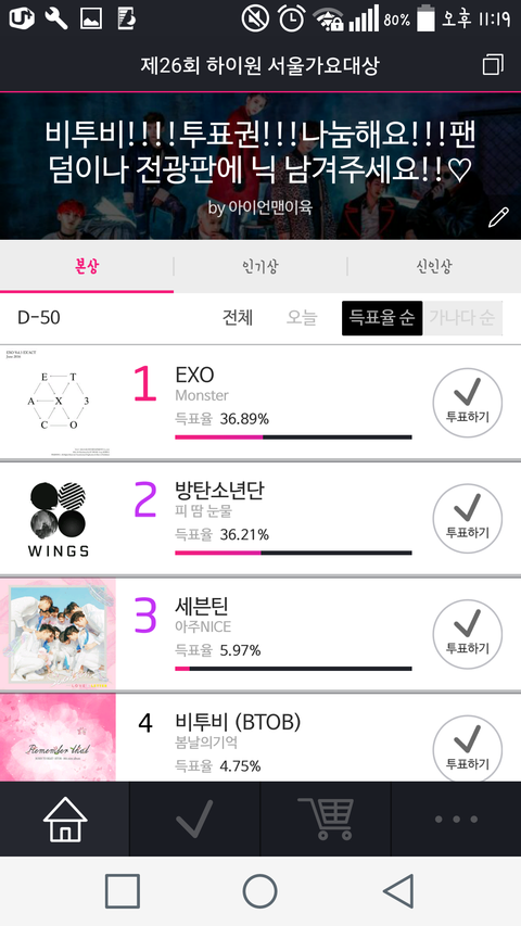 @@인기상 투표하라는 년=땅굴년임