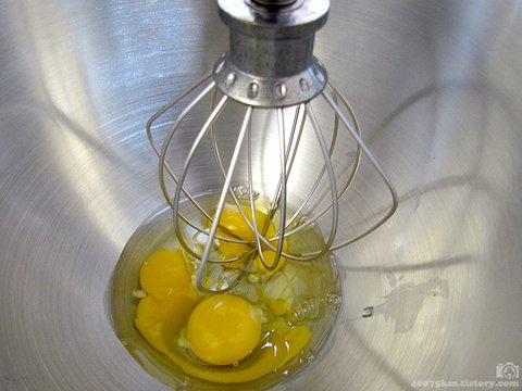 달걀 흰자와 노른자를 따로 거품내면 별립법이라고 하고, 함께 거품내면 공립법이라고 하는데 따로 거품내면 공기가 좀 더 많이 들어가서 가볍고 부드러운 식감이 나고 함께 거품내면 무겁고 촉촉한 느낌이 더 납니다.