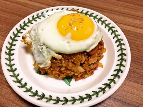 김치볶음밥 만들고나서 뭔가 아쉬워 계란후라이 하나 얹어봤습니다.
