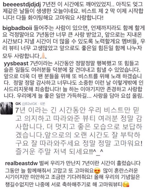 애들은 항상 우리가 주는 사랑을 당연하게 받지않고 그게 소중하다는걸 누구보다 잘 알고있기에 이런 관계가 된거같아 우리도 결코 애들이 해주는걸 당연하다 생각하지도않고 초반에 요섭이가 나 비스트팬이야 라고 당당하게 말할수있게,부러워 할수있게 해준다고 했는데 정말 그렇게 됬네 비스트라는 이름을 쉽게 버린다는게 아니라 그걸로 인해 애들이 가는길에 걸림돌이 된다면 우리생각하지말고 포기해도된다는뜻!