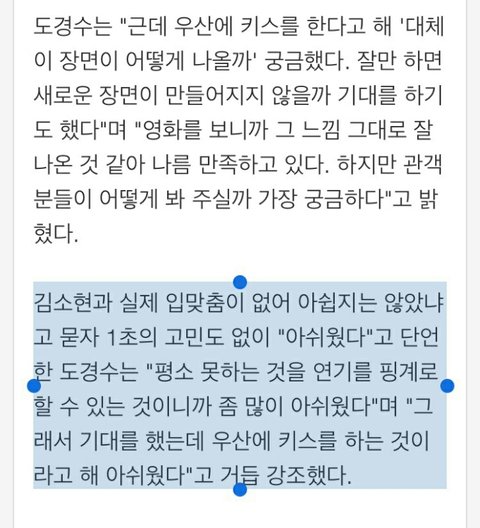 엑소 디오(도경수)가 공식석상에서 상대 여배우인 이도연과 찍은 키스신이 실제가 아니라서 정말 다행이라고 낄낄거리며 저질 농담을 함