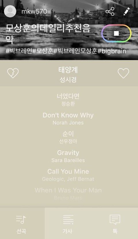 상훈이는 데일리 음악 추천해줬구요