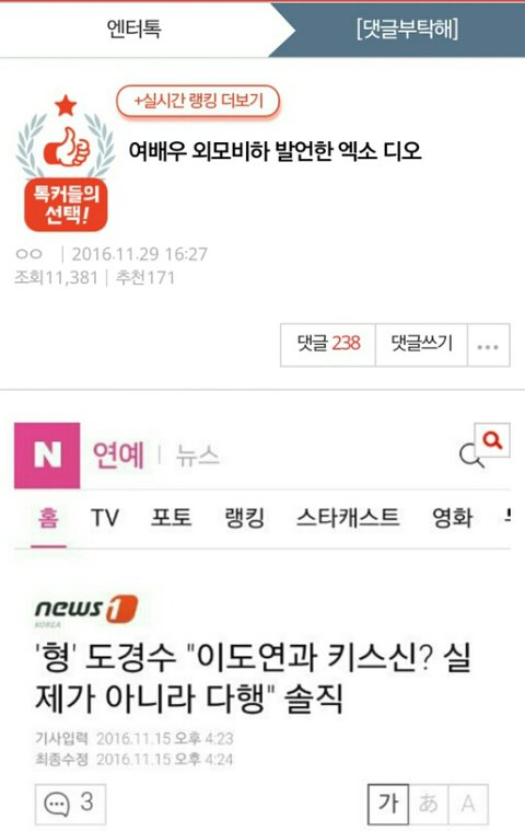 만약에 상대배우가 소위 못생긴 배우였다면 도경수가 키스신이 힘들었다고 한거보고도 외모비하라며 욕했겠지
