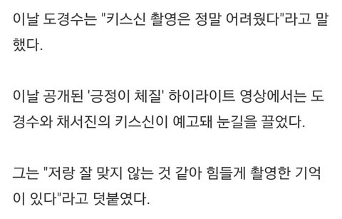 이때 도경수는 키스신이 힘들다, 어렵다고 언급했었음