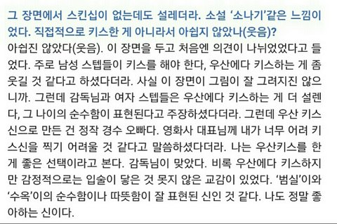 영화 순정에서 있었던 키스신 장면에 대한 상대배우 김소현의 인터뷰