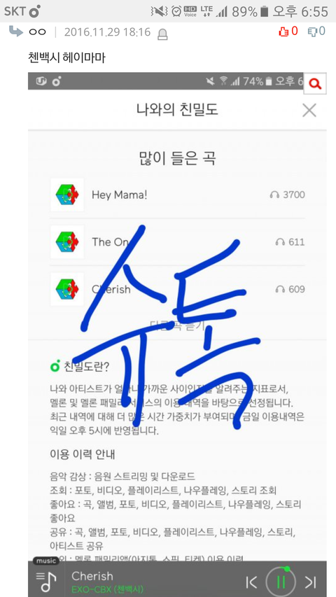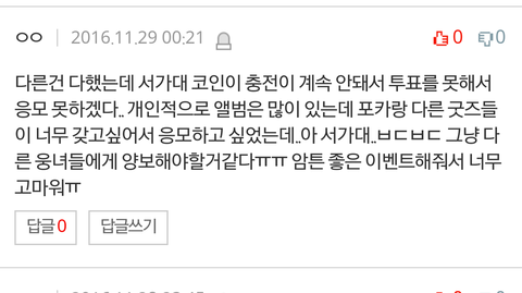 그리고 아래댓글 웅녀도 서가대투표 인증샷빼고 3가지만 이멜로 보내줄래? 확인하고 웅녀도 시우민앨범세트 보내줄게^^ 그럼 웅녀들 저녁 맛나게 드시고 감기 조심해♡