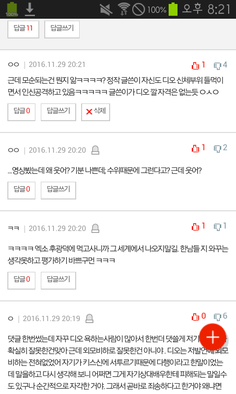 인신공격 지적한 댓 단지 1분도 안됐는디 반대만 벌써 4개임ㅋㅋㅋㅋㅋㅋ