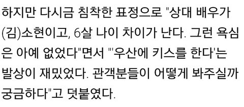 순정에서 키스신없다고 아쉬웠다고 말했지만 6살 차이가 난다고 그런욕심 없었다고말함